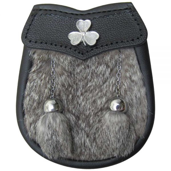 Classic Shamrock emblem on the front of the sporran, with 2 Gray Fur tassels