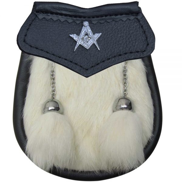 Classic Masonic emblem on the front of the sporran, with 2 White Fur tassels