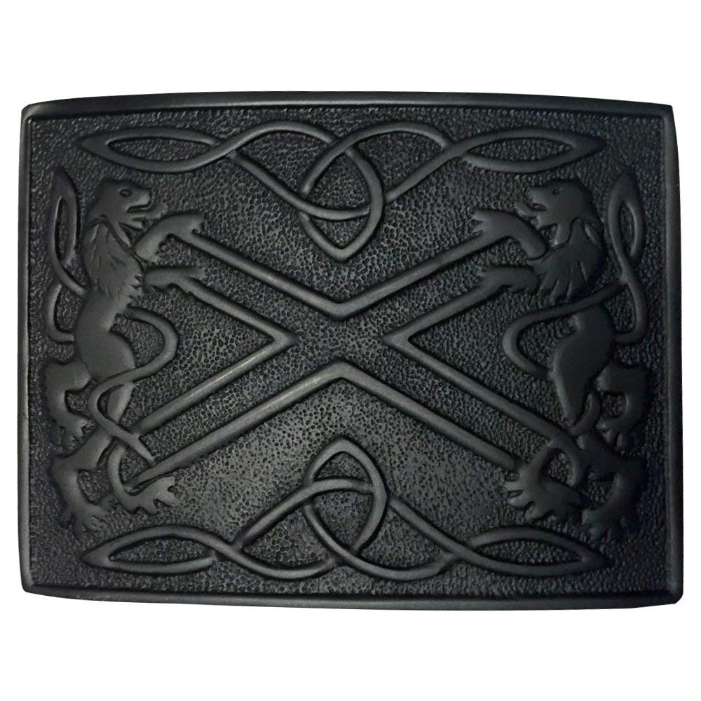 AAR Deluxe Saltire & Lion Kilt Belt Buckle Jet Black Finish Scottish Saltire & Lion Band High Quality. Size Measures 3.50" X 2.50". These buckles are designed to fit standard velcro kilt belts Size Measures Kilt Belt is 2.25" Wide.The design of this buckle will not disappoint you as it is a very attractive buckle. Don't forget to purchase a Scottish kilt belt from AAR Products. We have large selection of buckles in our store.Great value for Money. Money Back Guarantee