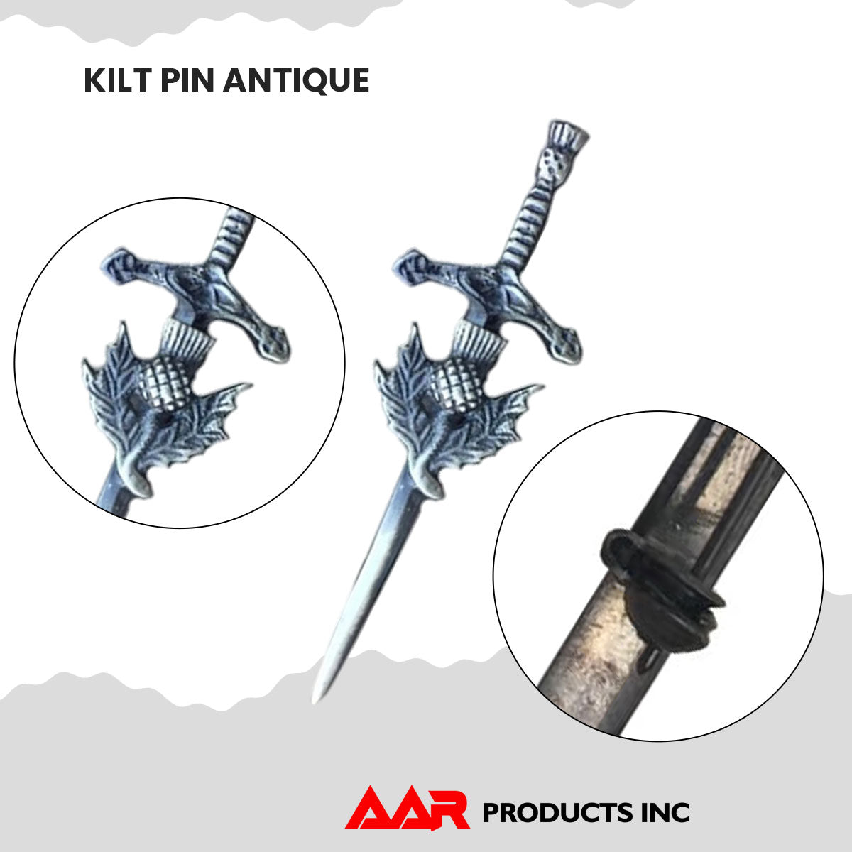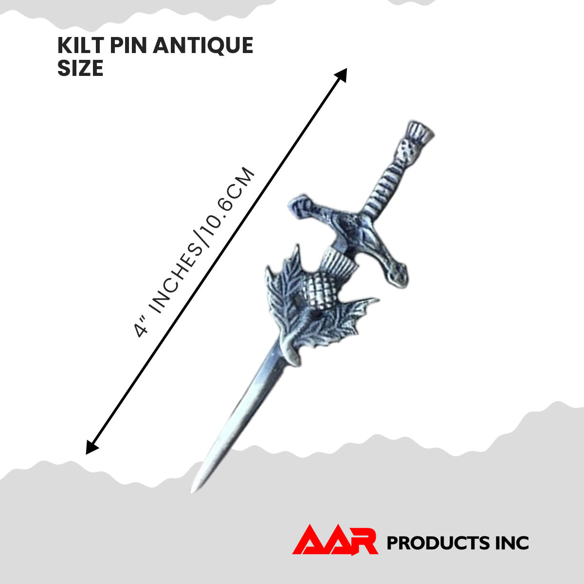 AAR Scottish Thistle Brand New Kilt Pin Antique Chrome Plated 4" Long