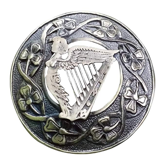 Scottish Irish Harp Kilt Brooch Fly Plaid Antique Finish 3" (7cm) Also available in different Style. Money Back Guarantee Customer Satisfaction Guarantee