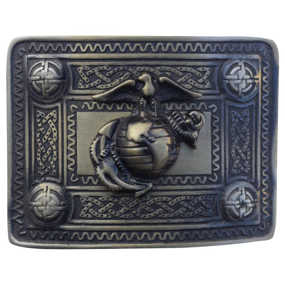 - AAR Scoittsh Kilt Belt Buckle with U S Marine Badge Antique Finish Highland Kilt Belt Buckles