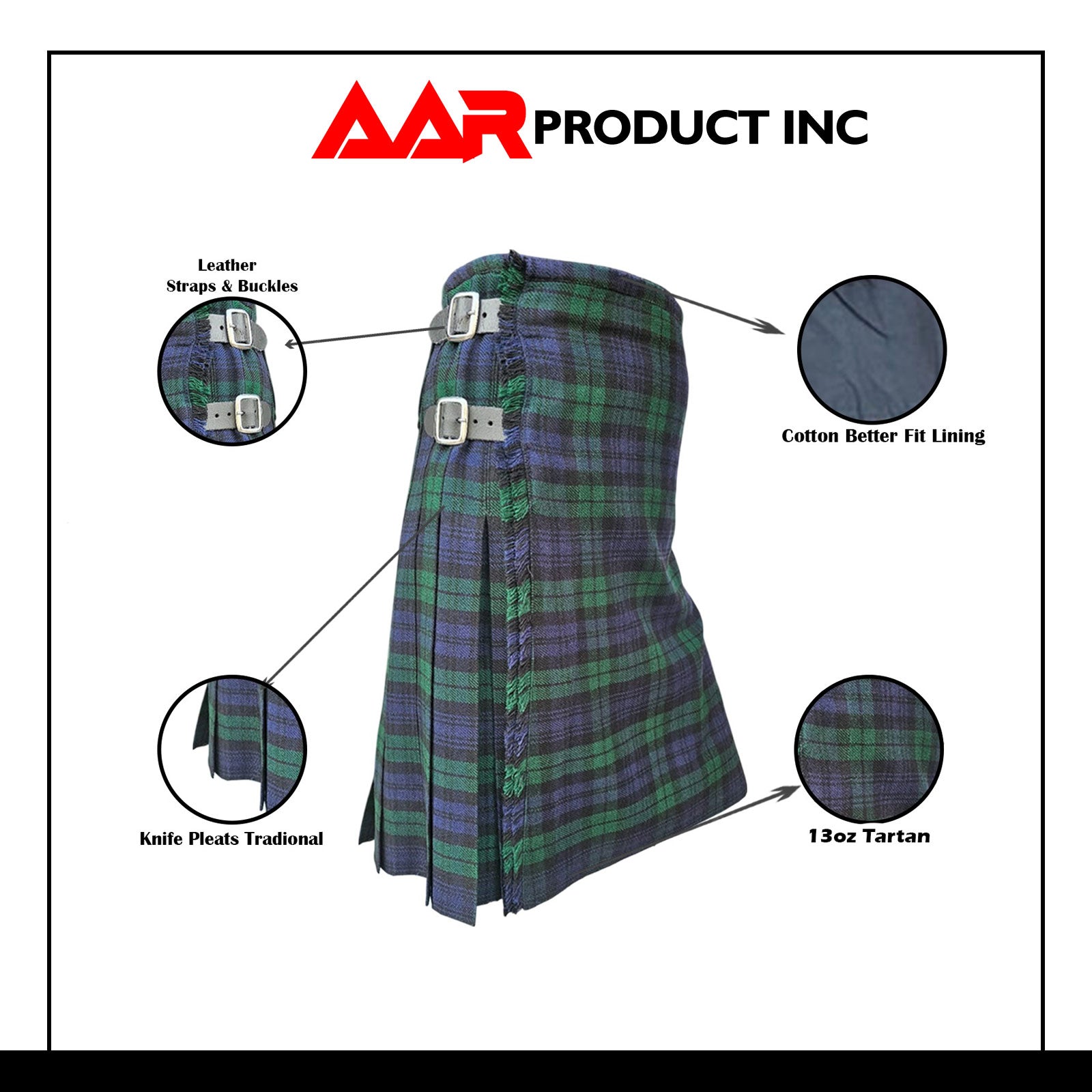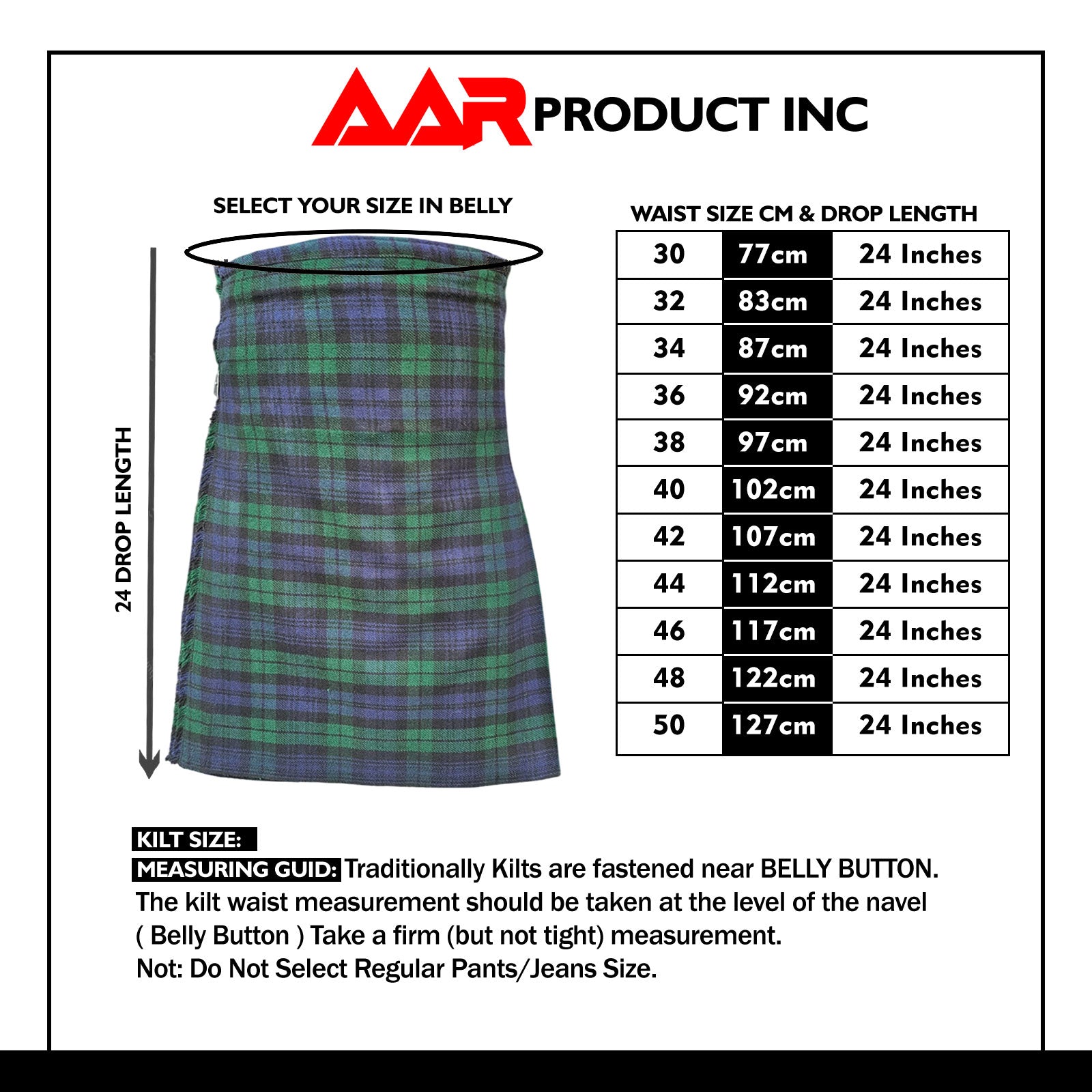 Product Name:Brand New AAR Men’s 6-yard Kilts Tartan Scottish Highland Black Watch Wear All Sizes