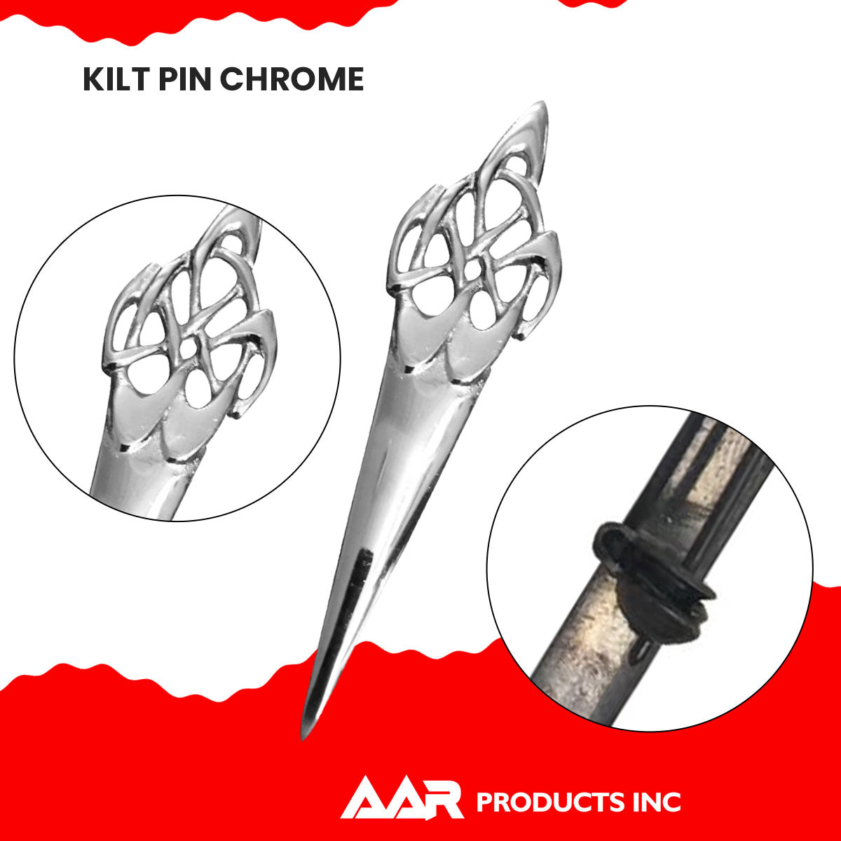 AAR Traditional Scottish Highland Celtic Kilt Pin Chrome Finish 4" Long