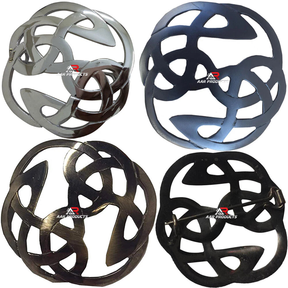 This Scottish Highland Kilt Fly Plaid Brooch Celtic Knot Brass Antique/ Chrome / Black Finish.