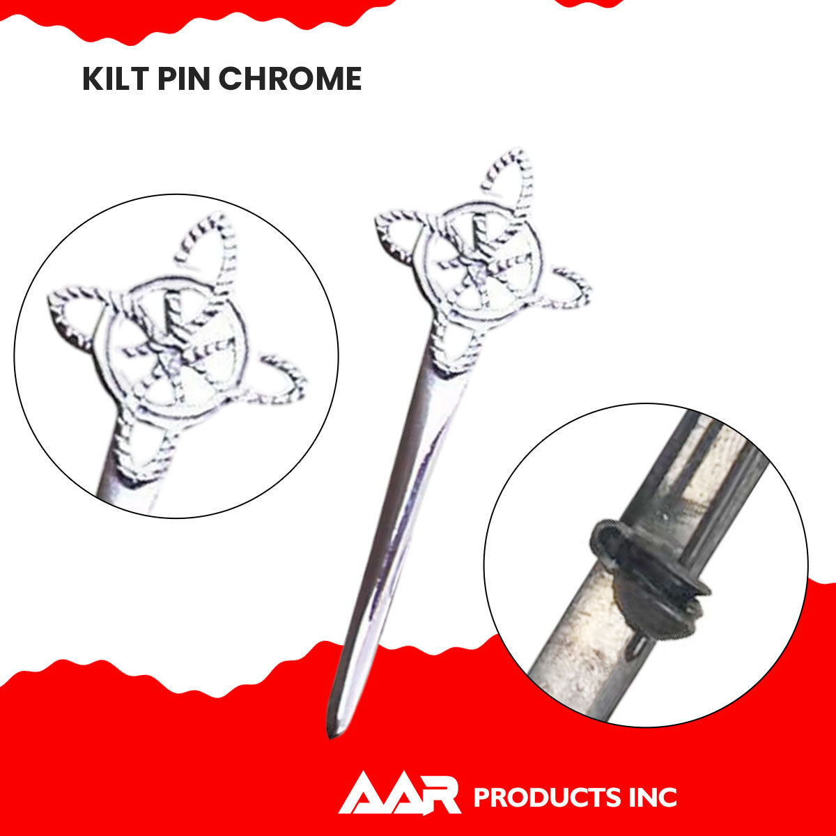 New Celtic Twist Kilt Pin Crest Mounted Chrome Finish Kilt Accessory.